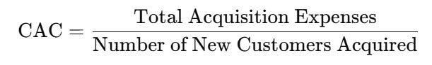 Customer Acquisition Cost (CAC): Total cost to acquire a new customer.